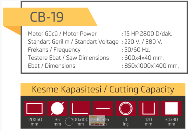 15 Hp CB-19 Profil Kesme Makinası