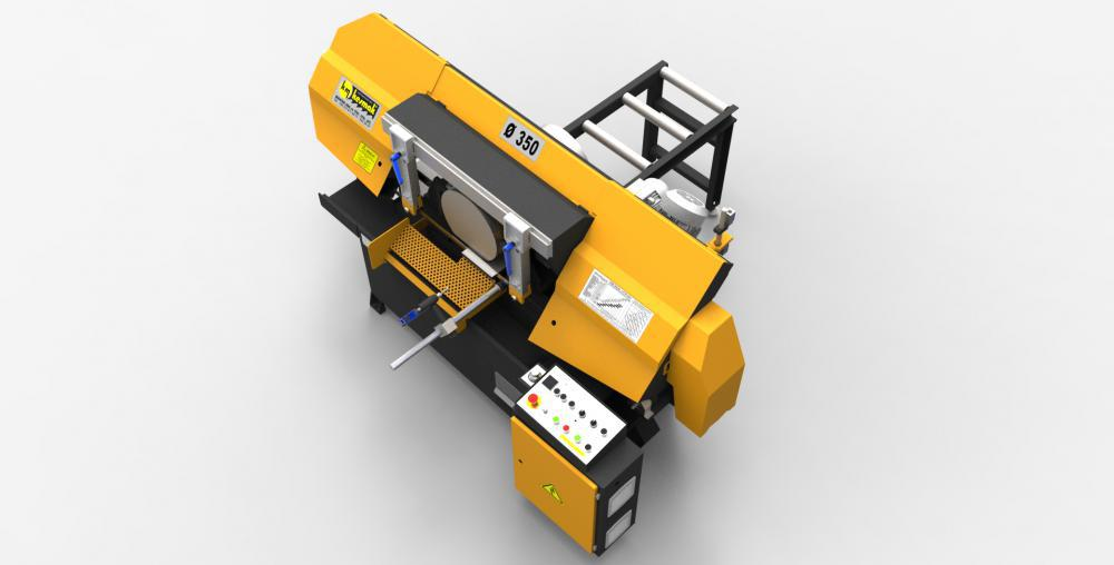 Mafsallı şerit testere makinaları gövde üzerinde tasarıma dayalı hesaplamalar sonucu elde edilen köşe noktasına bağlı (mafsal bağlantılı) hareketli gövdenin tek bir hidrolik piston ve hidrolik kısıcı valf yardımıyla “y” ekseninde (düşey eksende) hareket ettirildiği makinalardır.